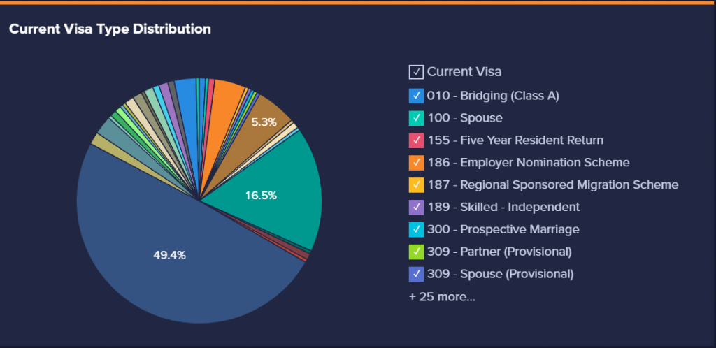 Preparing visa applications necessarily requires the collation of an abundance of data from both visa applicants and sponsoring organisations. We provide secure access to beautiful visualisations of this data to allow you to easily track your visa populations. You can customise fields, visualisation types, branding, colour schemes, placements and widgets to ensure you can easily sift through the data in a way that suits your business needs.